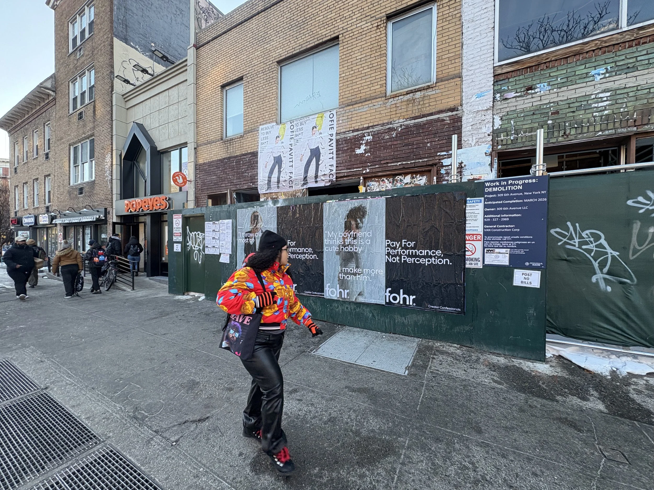 Wheatpaste poster location in downtown Manhattan, with the FOHR 48×72 designs.